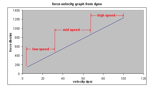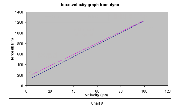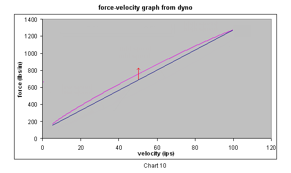 Chart 6 shows how the dyno's force-velocity curve might translate to the suspensions performance on the track (very approximate for this example).