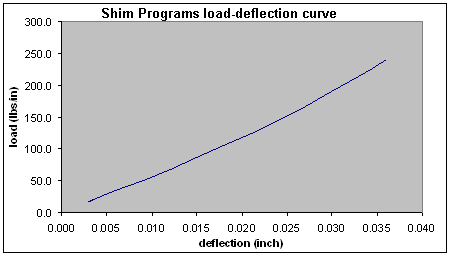 In previous examples, we have been talking about the stiffness of shim stacks as one might calculate on the Shim Program. The program is not used to compare stacks, it's just used to predict how proposed shim changes affect the stacks overall load-deflection curve.
