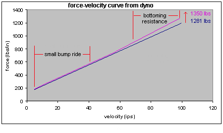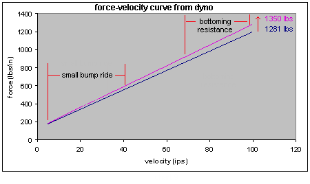 The dyno's force-velocity curve coincides with the Shim Programs load-deflection curve.