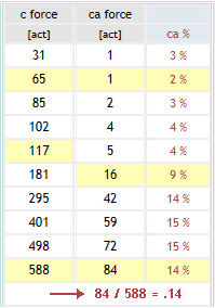 - ca% = (ca force / c force)